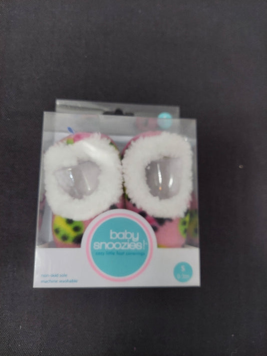 Snoozies Slippers - Pink and White Baby Slippers 0 to 3 Months