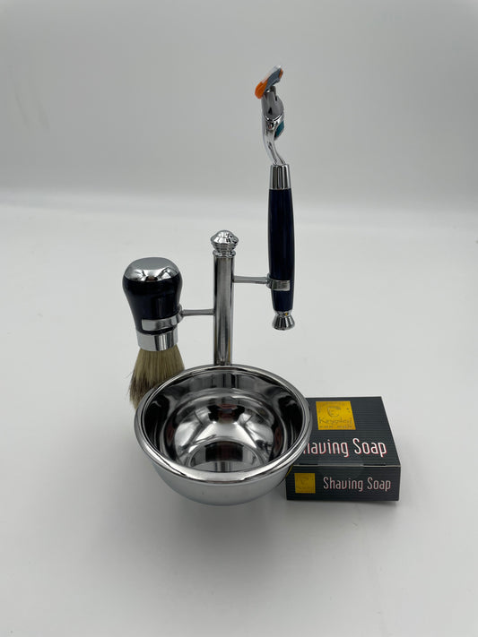 Kingsley Shave Set - Marble Blue look and Silver Handles, Soap and Stand SB-676