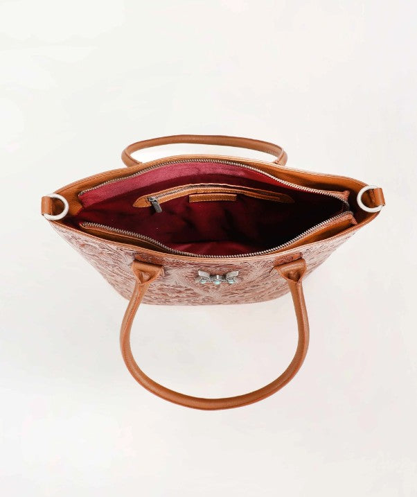 This expansive tote merges traditional leatherworking with contemporary utility. Hand-tooled full-grain leather and supple calfskin create a distinctive surface texture across the entire silhouette, reflecting generations of artisanal technique. The generous interior accommodates daily necessities while premium hardware ensures durability and refined aesthetics. Whether paired with casual wear or formal attire, the Drover Large Bag delivers understated elegance with an unmistakably rugged character that develops character with age and use.