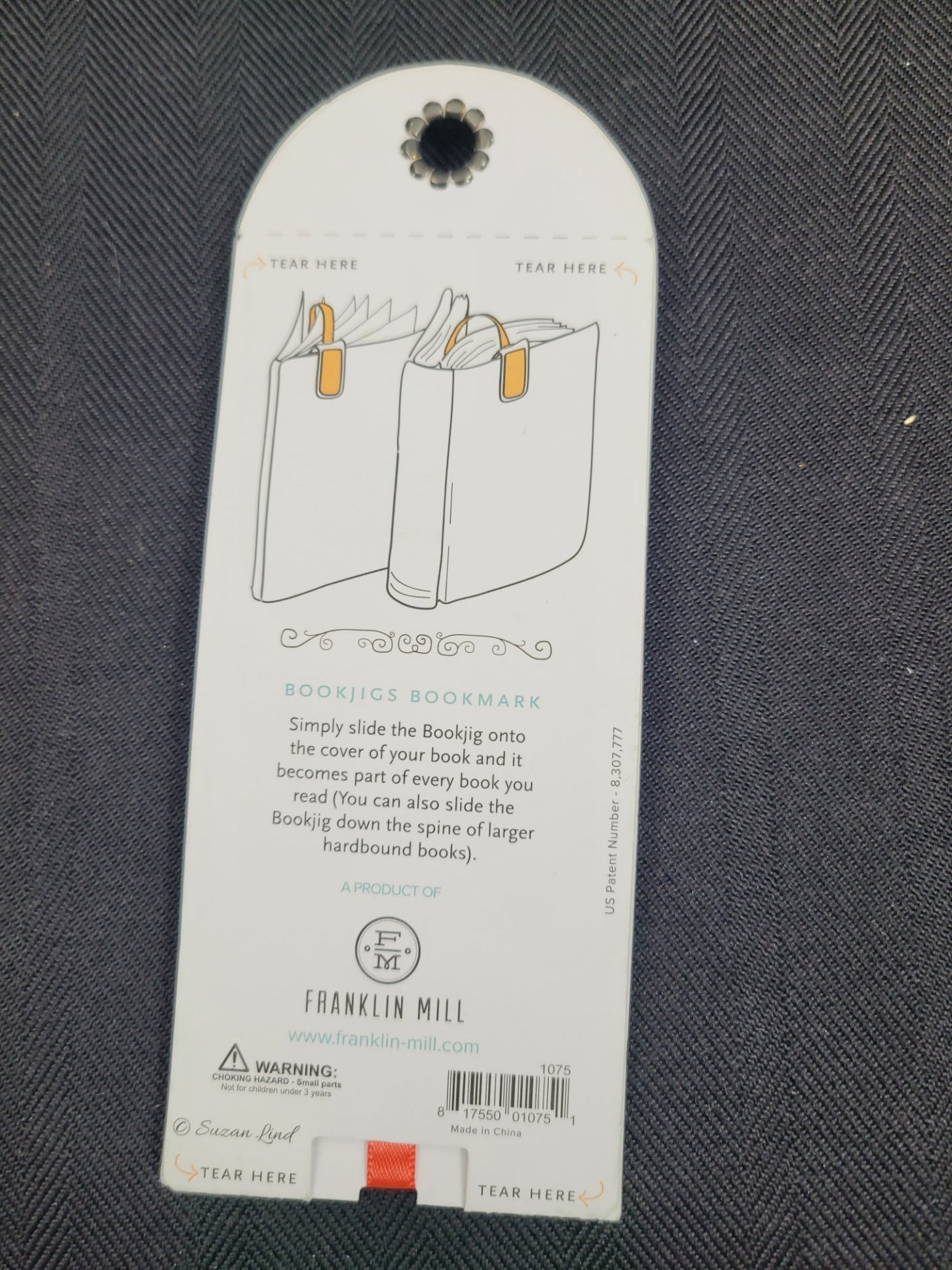 The term Bookjig draws inspiration from the woodworking jig, a tool renowned for delivering precise accuracy, similarly, the Bookjig is designed to enhance the reading experience with precision. Its striking graphic design caught my attention immediately. Ideal for any reading session, this accessory combines aesthetics with practicality. As a dedicated reader, I value bookmarks greatly and often browse bookstore counters for unique finds. While many bookmarks feature charming designs, they often lack functionality, frequently slipping out or becoming damaged. The Bookjig, crafted by Franklin Mill of Salt Lake City, elegantly solves this issue with a metal clip securing it to the book's cover and an attached ribbon that nestles safely between pages, ensuring reliable use.