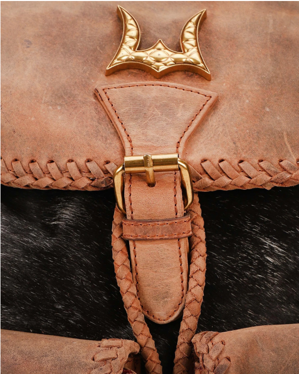 The Jerona Large Backpack combines bold black and white hair-on cowhide with luxurious calfskin, offering a striking contrast of textures. The spacious design and premium hardware make this backpack as functional as it is stylish.