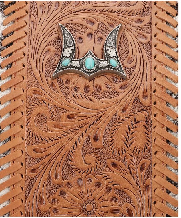 This crossbody bag merges authentic craftsmanship with contemporary style, constructed from luxurious hair-on cowhide paired with refined calfskin. Hand-tooled embellishments grace the flap, while signature tassel details add movement and character. The thoughtfully proportioned silhouette provides ample storage without sacrificing elegance, making it equally suited to weekend errands or evening events. Built to withstand daily use while maintaining its sophisticated bohemian aesthetic, this piece represents a discerning choice for those seeking enduring quality and distinctive character.